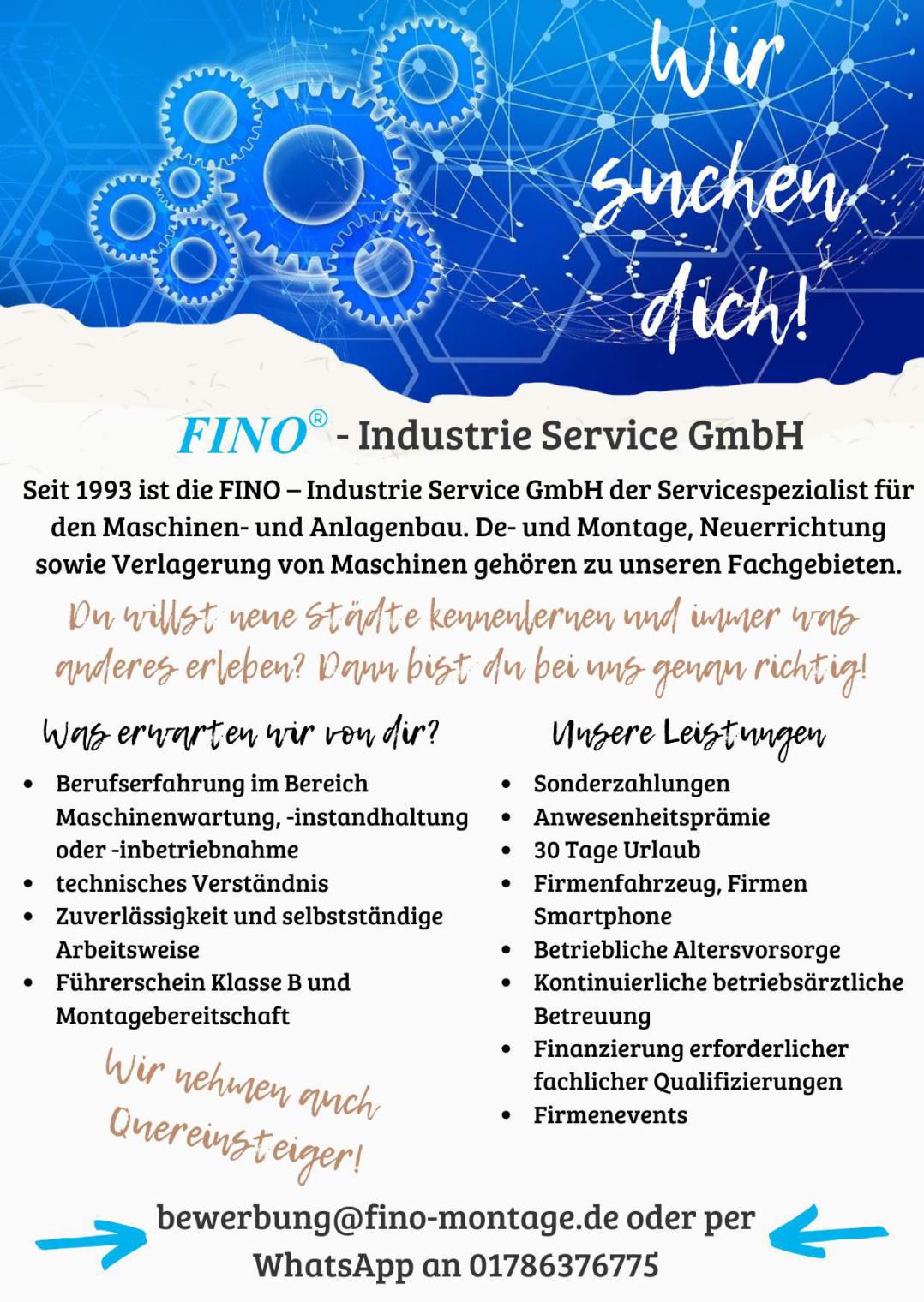 Seit 1993 ist die FINO - Industrie Service GmbH der Servicespezialist nicht nur für Papierfabriken weltweit. Unsere zahlreichen Einsätze weltweit sind Beleg für die Flexibilität und Know-how der FINO-Mitarbeiter, um jederzeit Ihre Probleme überall zu lösen. Mit dem speziellen Equipment stehen wir mit Lösungen parat und können Ihr Projekt zum Erfolg führen. Mit unserer Dienstleistung im Bereich Instandhaltung, Verlagerung und Montage sorgen wir im Hintergrund dafür, dass die Produktion unserer Kunden optimal läuft. Wir sind Menschen, die anpacken, Problemlöser, Multitalente und wenn nötig auch mal Feuerwehr und ja wir zahlen Inflationsausgleich.